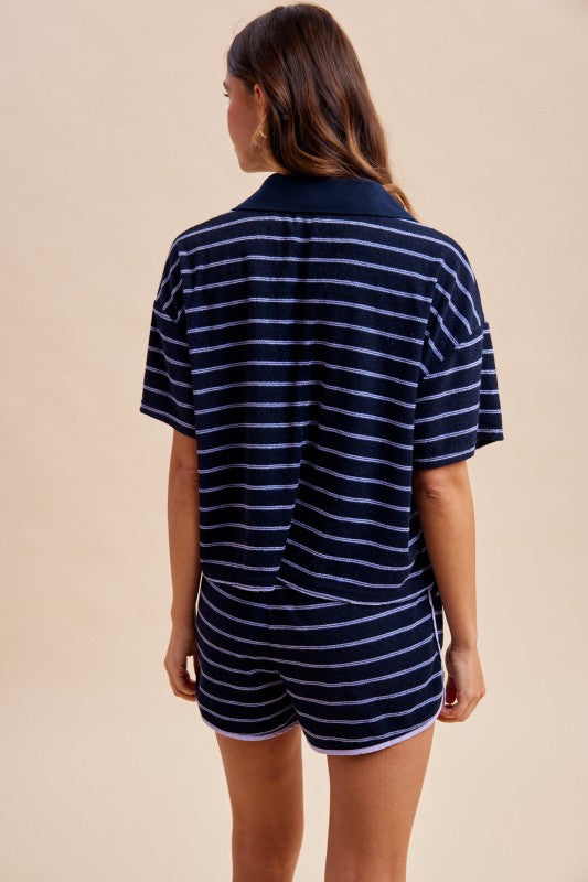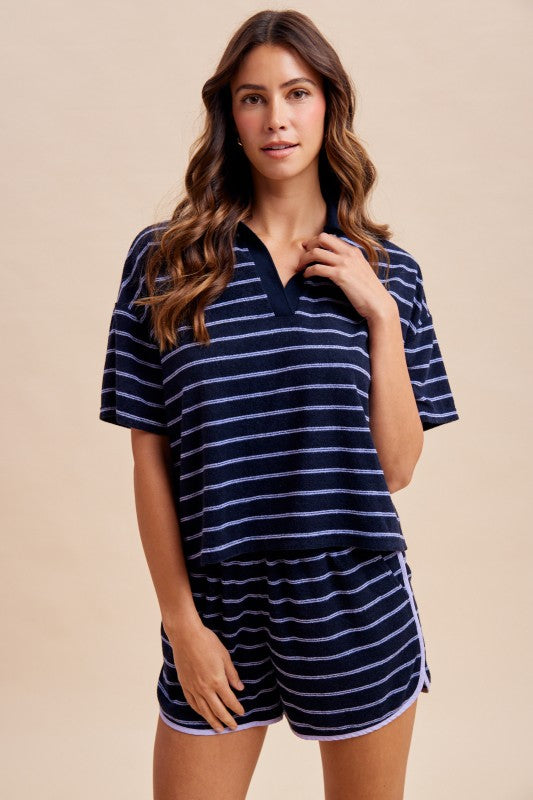 The Midnight Striped Terry Set is made from soft towel fabric with a relaxed fit that feels as good as it looks.
